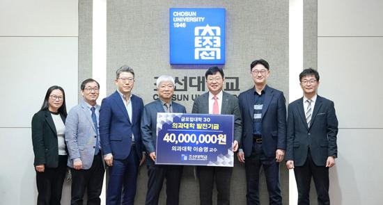 27일 조선대에 따르면 이날 의과대학 이 교수가 후배들을 위해 써달라며 4000만 원을 학교 측에 전달했다. 또 대학병원에는 병원신축기금으로 5000만 원을 기부했다.