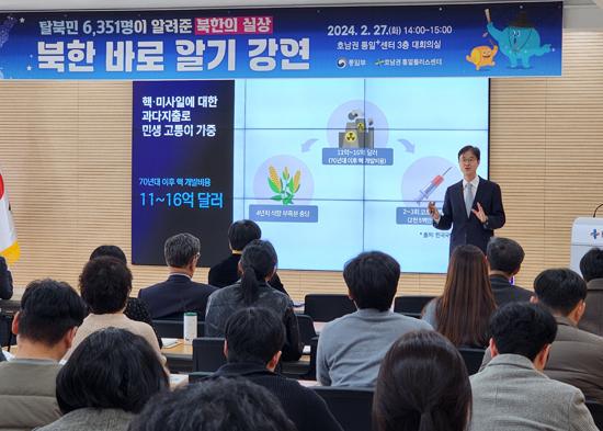 전남도 호남권통일플러스센터는 27일 통일부 황태희 통일협력국장을 강사로 초빙해, ‘북한 바로 알기’ 특별강연회를 개최했다.