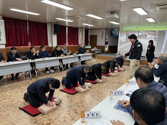 반상회 사전교육에 이은 이날 교육에서는 심폐소생술 이해, 응급 상황 대비 실습 등이 이뤄졌다.