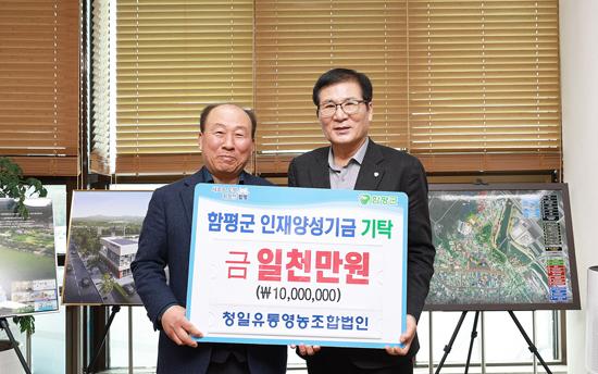 청일유통영농조합법인에서 함평군의 지역 인재 양성을 위해 인재양성기금에 장학금 1000만 원을 기탁해 지역사회에 눈길을 끌고 있다.