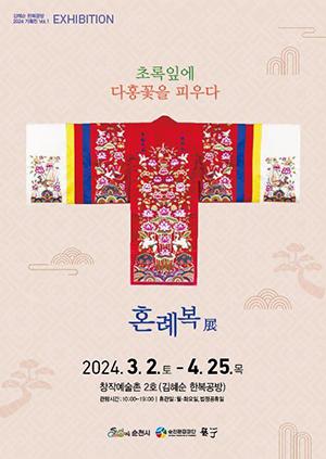순천문화재단에서 운영하는 순천 창작예술촌 2호 ‘김혜순 한복공방’이 전통 혼례복을 주제로 한 ‘초록잎에 다홍꽃을 피우다’ 전을 오는 4월 25일까지 개최한다.