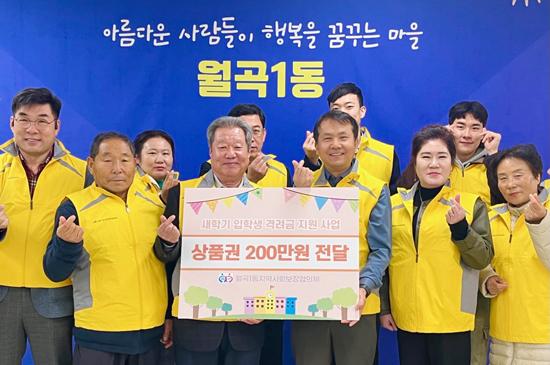 광산구 월곡1동 지역사회보장협의체(이하 지사협)이 29일 초·중·고등학교에 입학한 저소득 및 다문화가정 입학생 20명에게 입학축하금을 전달했다.