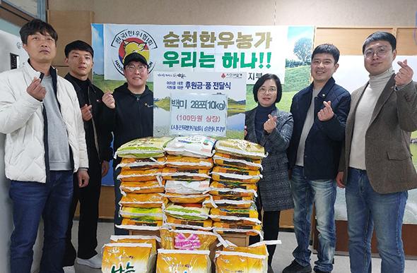 순천시는 지난 2월 28일 (사)전국한우협회 순천시지부(지부장 서인수)에서 백미(10kg) 28포를 기탁했다고 밝혔다.