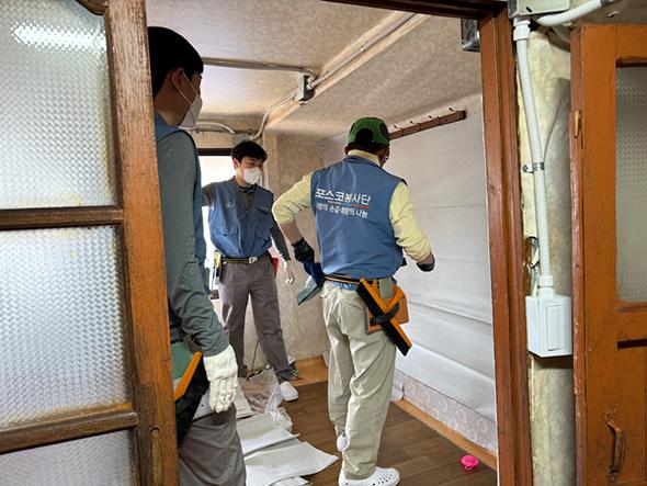 박상훈 골약동장은 “취약계층의 주거환경개선을 위해 추운 날씨에도 찾아와 도움을 주신 포스코 도배재능봉사단 및 협력기관에 감사드린다”며 “앞으로도 어려운 이웃들을 적극 발굴해 필요한 맞춤형 복지서비스를 연계·지원하도록 힘쓰겠다”고 전했다. /광양=조순익 기자