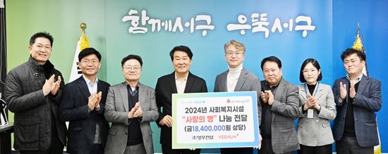 박재홍 회장은 “우리 기업은 매년 지역사회를 위해 사회공헌활동을 해오고 있으며 이번 기회에 서구 지역의 사회복지시설을 이용하는 취약계층에게 조금이나마 도움을 줄 수 있어서 뜻깊게 생각한다”며 “앞으로도 돌봄 이웃을 위한 ‘함께 서구, 따뜻한 생활정부’ 실현에 적극 동참하겠다”고 말했다.