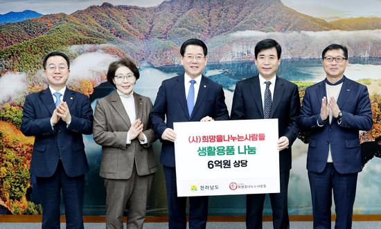 전남도는 5일 (사)희망을 나누는 사람들로부터 취약계층 지원을 위한 6억 원 상당의 생활용품을 기탁받았다.