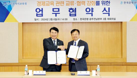 광주시교육청이 6일 한국은행 광주·전남본부와 초·중·고 학생들의 경제·금융교육 활성화를 위한 업무협약을 체결했다고 밝혔다.