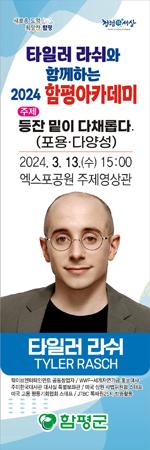 이번 강연회는 오는 3월 13일 오후 3시에 함평 엑스포공원 주제영상관에서 열리며, 타일러 라쉬는 ‘등잔 밑이 다채롭다’라는 주제로 다양성과 포용의 중요성에 대해 강연할 예정이다.