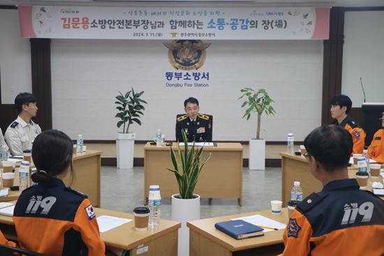 광주시소방안전본부 김문용 본부장은 11일 동부소방서를 시작으로, 오는 22일까지 5개 소방서, 소방학교, 119특수대응단, 빛고을국민안전체험관 등 지역 소방기관을 찾아 직원들과 소통·공감의 시간을 갖고 있다.