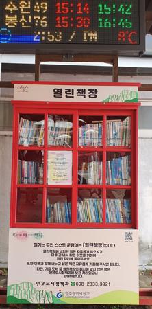 ‘열린 책장’은 2014년 설치된 무인형 개방도서관으로 200여 권의 도서를 자유롭게 열람할 수 있고, 주민들의 자발적인 도서 기증·교환을 통해 지식과 정보의 나눔 공간으로 활용되고 있다.