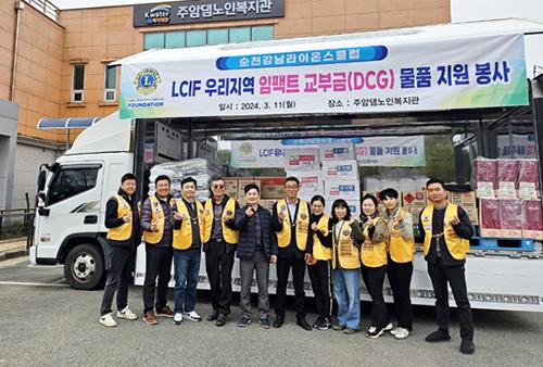 국제라이온스협회 355-B3 전남동부지구 순천강남라이온스클럽은 지난 11일 사회복지법인 K-water 나눔복지재단이 운영하는 주암댐노인복지관에 식료품 및 생필품 500만 원 상당의 물품을 전달했다.