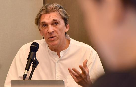 니콜라 부리오 제15회 광주비엔날레 예술감독이 25일 오후 광주 동구 한 호텔에서 기자회견을 갖고 내년에 열릴 비엔날레의 주제와 방향에 대해 설명하고 있다. 2023.06.25.