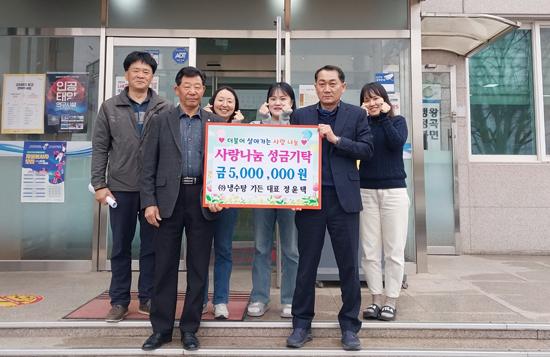 ㈜냉수탕가든이 나주시 왕곡면에 사랑나눔 성금 500만원을 기탁했다. /나주시 제공