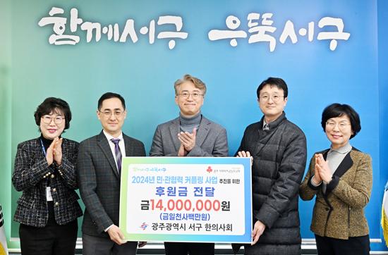 광주시 서구는 지난 15일 광주 서구 한의사회와 민관협력 커플링 사업의 일환으로 ‘뇌병변장애 청소년을 위한 고단백 영양음료 지원’을 위한 후원금 전달식을 개최했다.
