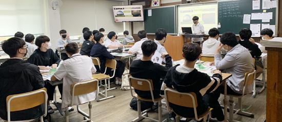 또한 학생 주도 학년별 학습공동체 팀을 구성해 매주 수요일 방과후학교 수업 시간에 심화 주제 탐구 활동을 진행하고 있다. 주제에 맞는 여러 교과 교사의 팀티칭을 통해 학생이 자신의 선택 교육활동과 탐구 교육활동을 유기적으로 이끌어 갈 수 있도록 지도 중이다.