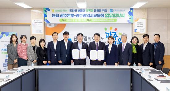 광주시교육청이 18일 농협 광주본부와 온라인 배움터 ‘초록샘’ 이용과 관련된 업무 협약을 체결했다고 밝혔다.