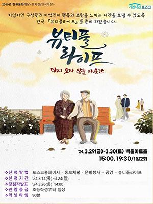 휴먼코미디 장르인 연극 \'뷰티풀라이프\'는 사단법인 한류문화산업포럼 주최 \'2019년 대한민국한류대상\'에서 연극부문 대상을 받은 작품으로 대학로에서 인기를 몰고 있는 화제작이다.