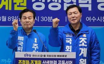 두 후보는 지난 8일 민주당 경선 과정서 기자회견을 열어 \"여수 갑과 을 지역의 대립과 갈등, 분열을 끝내고 상생 협력을 이루겠다\"고 약속한 바 있다.
