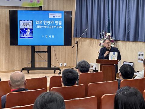 광주동부교육지원청이 지난 22일 광주체육고등학교 도담마루에서 광주체육중학교 학부모 대상으로 ‘학교 운동부 청렴도 향상을 위한 학부모 교육’을 실시했다.