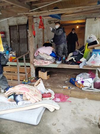 삼도동은 최근 열악한 환경에서 혼자 살고 있는 박모(82) 어르신을 알게 됐다. 어르신은 사업 실패 후 큰 부채를 떠안고 가족과 단절된 채 누울 공간 없이 쓰레기 더미가 쌓인 문중 재각에서 생활하고 있었다. 오래 방치한 물건, 음식물 쓰레기 등으로 악취가 심한 상태로, 지난겨울에 수도가 동파돼 기본적인 생활이 불가능한 여건이었다.
