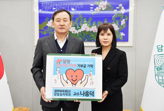 담양군은 광주여대 상담심리학과 나흥덕 교수가 고향사랑기부금을 기탁했다고 22일 밝혔다.
