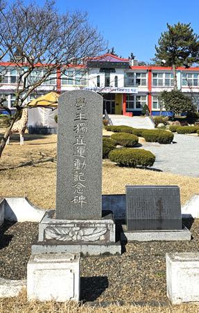 기념비에 새겨진 \'우리 선배들의 나라와 겨레를 위하는 애국정신이 투철했음을 후배들에게 길이 남기고자 이 사실을 여기 새겨 남기노라\'고 쓴 글귀는 지울 수 없는 역사 교과서로 남아 있다.