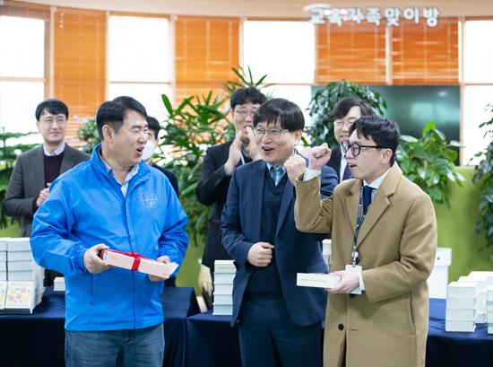 시교육청은 이날 캠페인과 함께 \'책 속의 떡\' \'독서 명언이 담긴 책갈피\' 전달행사 등을 펼쳤다. 직원들의 독서문화 확산을 위해 과별 추천 책 선물 릴레이도 시작했다.