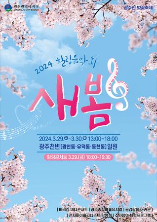 봄의 전령사 벚꽃이 만개한 3월 마지막 주말, 광주천변에서 힐링음악회가 열린다. 광주광역시 서구(구청장 김이강)는 오는 29일 오후 6시 광암교 하부 잔디밭에서 봄바람, 꽃내음, 음악이 어우러지는 힐링음악회 ‘새봄’을 개최한다고 밝혔다.