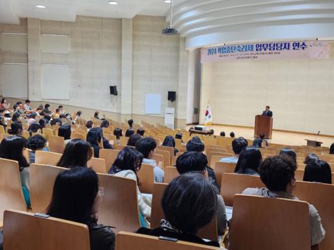 연수는 ▲2024 학업중단숙려제 운영 계획 ▲나이스(NEIS) 업무처리 ▲학업중단숙려제 기관 안내 등의 내용으로 진행됐으며 ‘2024 학업중단숙려제 길라잡이’를 배부해 업무 담당자들이 보다 안정적으로 ‘학업중단숙려제’를 현장에서 운영할 수 있도록 지원했다.