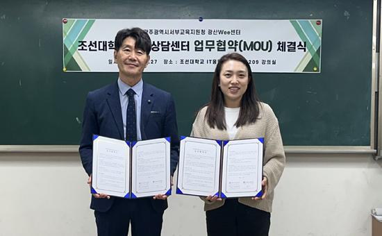 광주서부교육지원청 광산Wee센터가 27일 오전 조선대학교 심리상담센터와 ‘꿈키움 멘토링’ 사업을 위한 업무 협약을 체결했다.