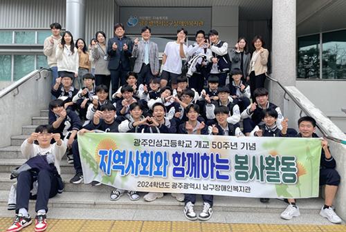 28일 광주인성고에 따르면 이번 봉사활동은 ‘남구장애인복지관’ 및 ‘소화천사의집’과 맺은 업무협약의 일환으로 진행됐다.