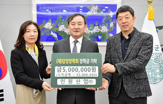 2002년 설립된 인원산업은 2016년부터 꾸준히 담양의 인재 양성에 관심을 이어와 올해까지 누적 5500만 원의 장학금을 기탁했다.