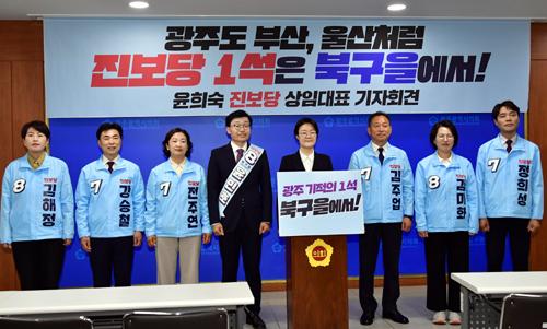 진보당은 광주 8개 선거구에서 7명의 후보가 출마했으나, 전략선거구로 지정한 북구을 윤민호 후보 지원에 총력전을 벌이고 있다.