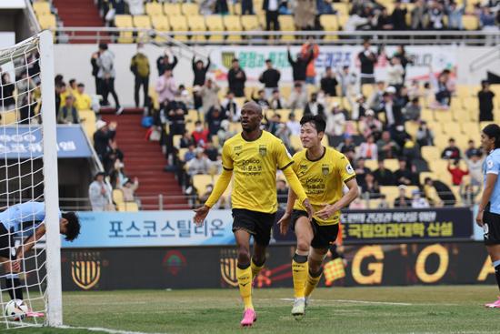 전남드래곤즈가 3월 31일 오후 2시 광양축구전용경기장에서 열린 하나은행 K리그2 2024 4라운드서 후반 추가시간 발디바이의 크로스 패스 도움을 받은 플라카가 헤더 극장골로 1-0 승리를 거뒀다.