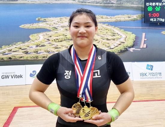 제35회 전국춘계여자역도경기대회에서 3관왕을 차지한 이유혜. /광주시교육청 제공