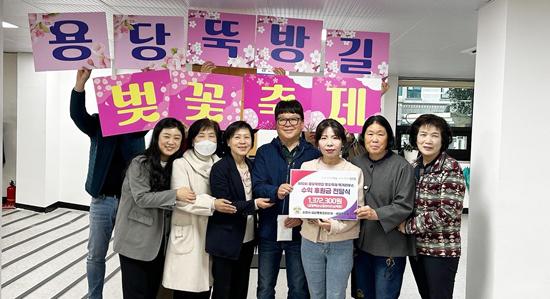 순천시 삼산동은 통장협의회와 새마을지도자회가 ‘제10회 용당뚝방길 벚꽃축제’ 먹거리 부스를 운영하여 발생한 수익금 137만원을 지역의 어려운 이웃에 써달라며 삼산동 행정복지센터에 기탁했다.