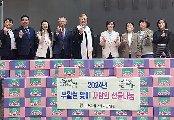 순천시는 최근 순천제일교회에서 부활절을 맞아 사랑의 선물 100상자(500만원 상당)를 시에 기탁했다고 4일 밝혔다.