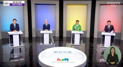 사전투표를 하루 앞둔 4일 광주 광산을 선거구 민형배 더불어민주당 후보와 이낙연 새로운미래 후보가 선거방송토론에서 \'민주당 공천 문제\', \'공약\' 등을 놓고 격돌했다.