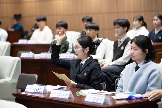 고등의회 백정현 의장(광주숭일고)은 “사람은 공간을 만들고, 그 공간은 다시 사람을 만든다는 말이 생각난다”며 “오늘 시의회 본회의장에서 회의했던 경험을 통해 우리는 한 단계 더 성장할 것이고, 이 경험을 살려 학교에서 학생자치활동이 더 활발해지도록 노력하겠다”고 소감을 밝혔다.