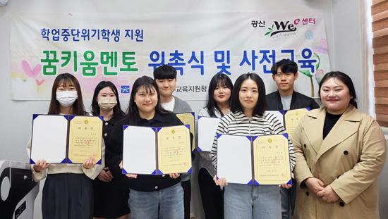 광주서부교육지원청 광산Wee센터가 지난 9일 조선대학교 심리상담센터에서 학교 부적응 학생과 위기 학생의 자아 성장 및 심리적 안정을 위한 사회적 지지망을 구축하고자 ‘Wee로 꿈키움 멘토단’(이하 멘토링) 멘토 위촉식과 교육연수를 개최했다.