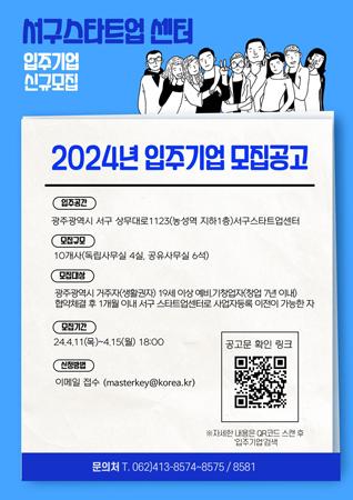 모집대상은 광주광역시 거주 예비창업자 및 7년 미만 기 창업자로 공고일 기준19~39세 및 서구민을 우대하며 선정 후 스타트업센터로 사업자등록을 완료하고 계약기간 내 창업 유지가 가능해야 한다. 신청은 오는 11일부터 15일까지 입주신청서, 사업계획서 등을 구비해 이메일(masterkey@korea.kr)로 제출하면 되고 기타 문의는 스타트업센터(062-350-4947)로 하면 된다.