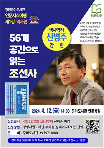 광양중마도서관이 오는 12일 오후 2시, \'인문지식여행\' 특강의 첫 번째 시간으로 역사학자 신병주 교수 초청 강연을 연다.