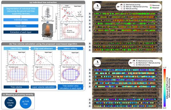 과수 바이오매스 측정 절차 및 가지치기 정도 맵핑. /전남대 제공