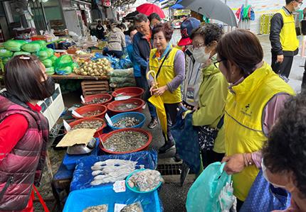 첫 시작으로 15일 송정매일시장에서 지사협 위원들과 돌봄 이웃 10명이 장을 봤다.