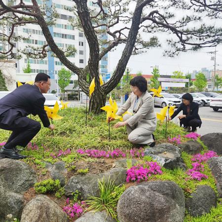 동부교육지원청에 따르면 이번 행사는 정성숙 교육장을 비롯한 전 직원들이 참여했다. 청사 1층에 마련된 세월호 추모공간에서 ‘열 번째 봄, 세월호를 기억하겠습니다’라는 마음을 담아 추모 메시지를 남기며, 안전한 사회를 만드는 다짐의 시간을 가졌다.