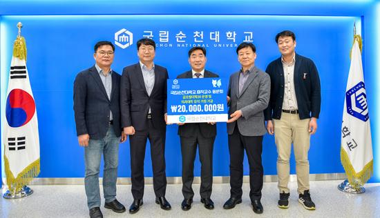 국립순천대학교 재직교수 동문회가 지난 16일 ‘글로컬대학 성공 및 국립의과대학 유치’를 기원하며 대학발전기금 2000만 원을 기탁했다.