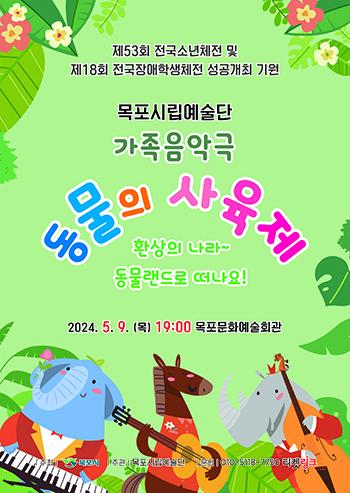 가족음악극은 “동물의 사육제”(환상의 나라~ 동물랜드로 떠나요!)를 주제로 오는 5월 9일 오후 7시 목포문화예술회관 공연장에서 열린다.