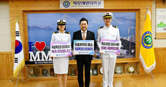 한원희 총장은 “국립목포대학교가 의과대학을 유치해, 의료시설 인프라가 부족한 전남 지역의 오랜 숙원을 해결할 수 있도록 저를 포함한 국립목포해양대학교 구성원 모두가 열렬한 지지와 성원을 보내며, 의과대학 유치가 확정되는 그날까지 지역민과 함께 한마음 한뜻으로 응원하겠다.”라고 밝혔다.