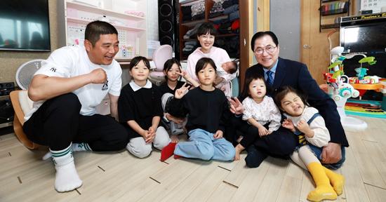 23일 완도군에 따르면 신우철 군수가 지난 22일 여섯째 아이를 출산한 보길면 백두리 김찬성(40)씨 가정을 찾아 축하 인사를 전했다.
