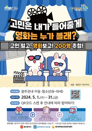 광주시는 5월 \'고민은 내가 들어 줄게~ 영화는 누가 볼래?\'를 주제로 온라인 캠페인을 벌인다고 29일 밝혔다.
